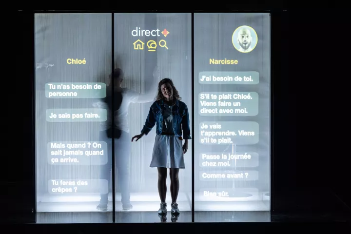 Dans son passage à l’âge adulte, Narcisse est exposé au succès à travers les médias et les réseaux sociaux. Dans sa solitude, le jeune homme se parle à lui-même, partagé entre le souci permanent d’être à la hauteur de la perfection de son double social et l’isolement dans lequel cet avatar le plonge. Sur son chemin, Narcisse rencontre Chloé dont le chant semble être sans cesse une ritournelle des incertitudes de Narcisse, de son envie soudaine de disparaître.
